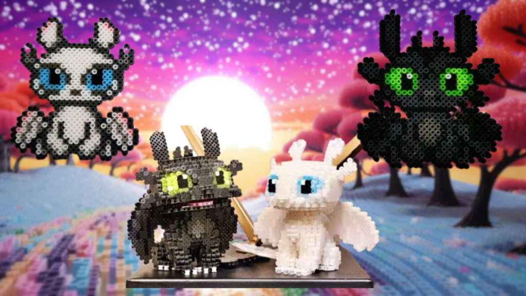 Hvis du vil fortsette å designe hama-perler fra Dragon Trainer, finner du her en video som kan inspirere deg til å lage disse og mange andre figurer i parl-fliser.Med en av de mest elskede figurene i denne serien, Tannlaus, den bedårende svarte dragen i denne filmsagaen.Figuren din vil se flott ut med denne guiden og trinn-for-trinn-videoen hvis du følger alle trinnene.